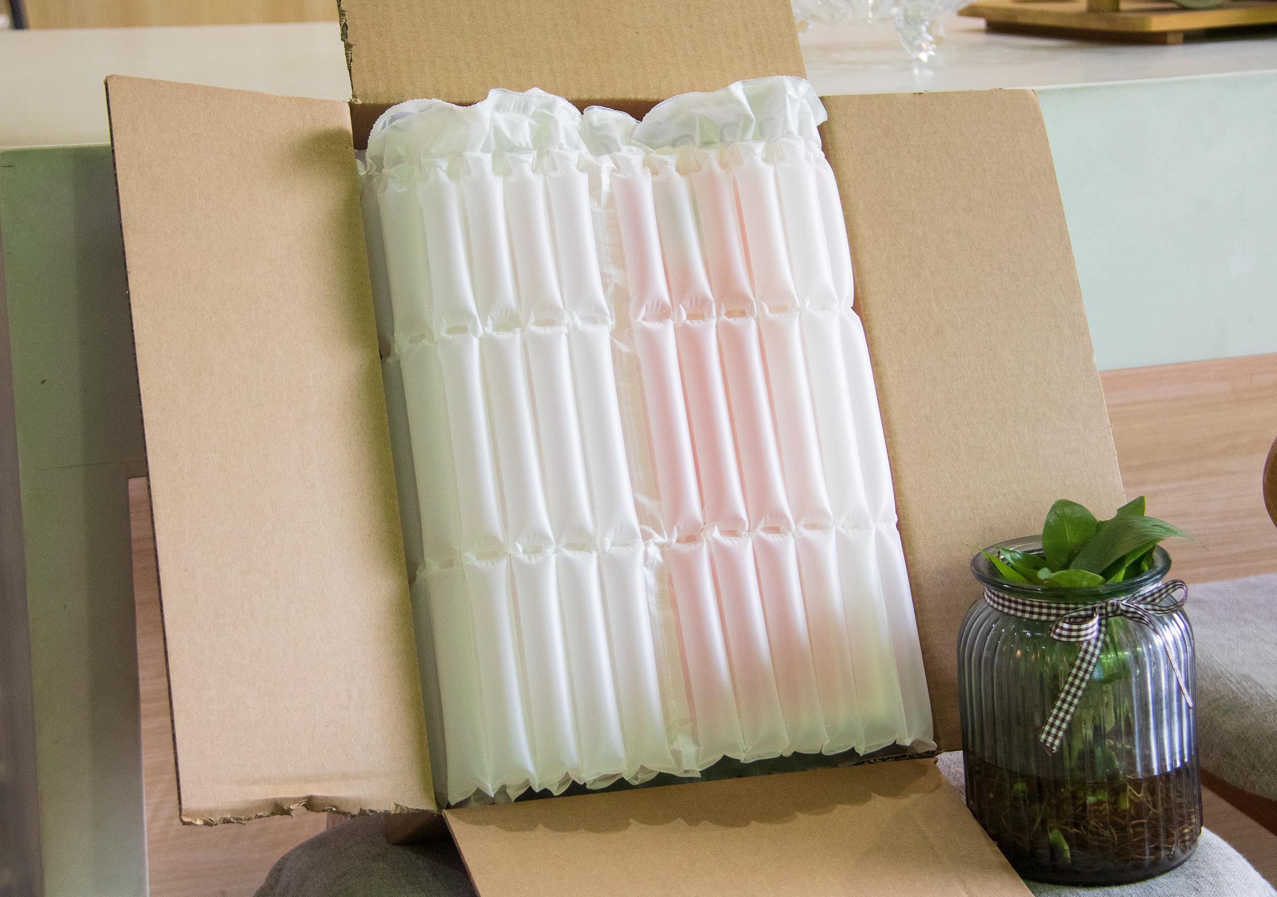 MINI AIR 本色無印氣泡枕(Filler)(HDPE Air Pillow)是由HDPE材料通過吹膜設備和制袋設備制成的氣囊狀薄膜產品。由99%空氣和1%PE膠膜組成,極大節約了包裝材料倉儲空間;可承受50~120kg的壓力,使用時經過充氣設備充氣熱封后,用于包裝容器內產品的填充、減震、穩固產品,可有效吸收貨物運輸過程中因晃動、震動、碰撞、拋丟所帶來的沖擊力,起到緩沖保護的作用,確保產品運輸安全。通過全球第三方SGS物理性能測試,符合RoHS材料安全標準,深受電子儀表、陶瓷工藝品、家用電器、五金工具產品和精密儀器等行業的青睞。